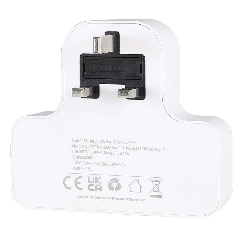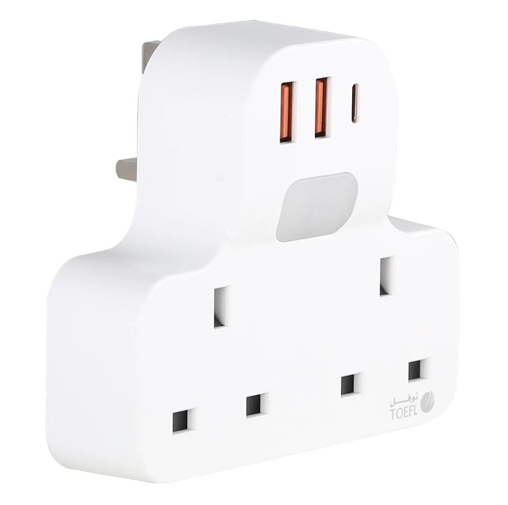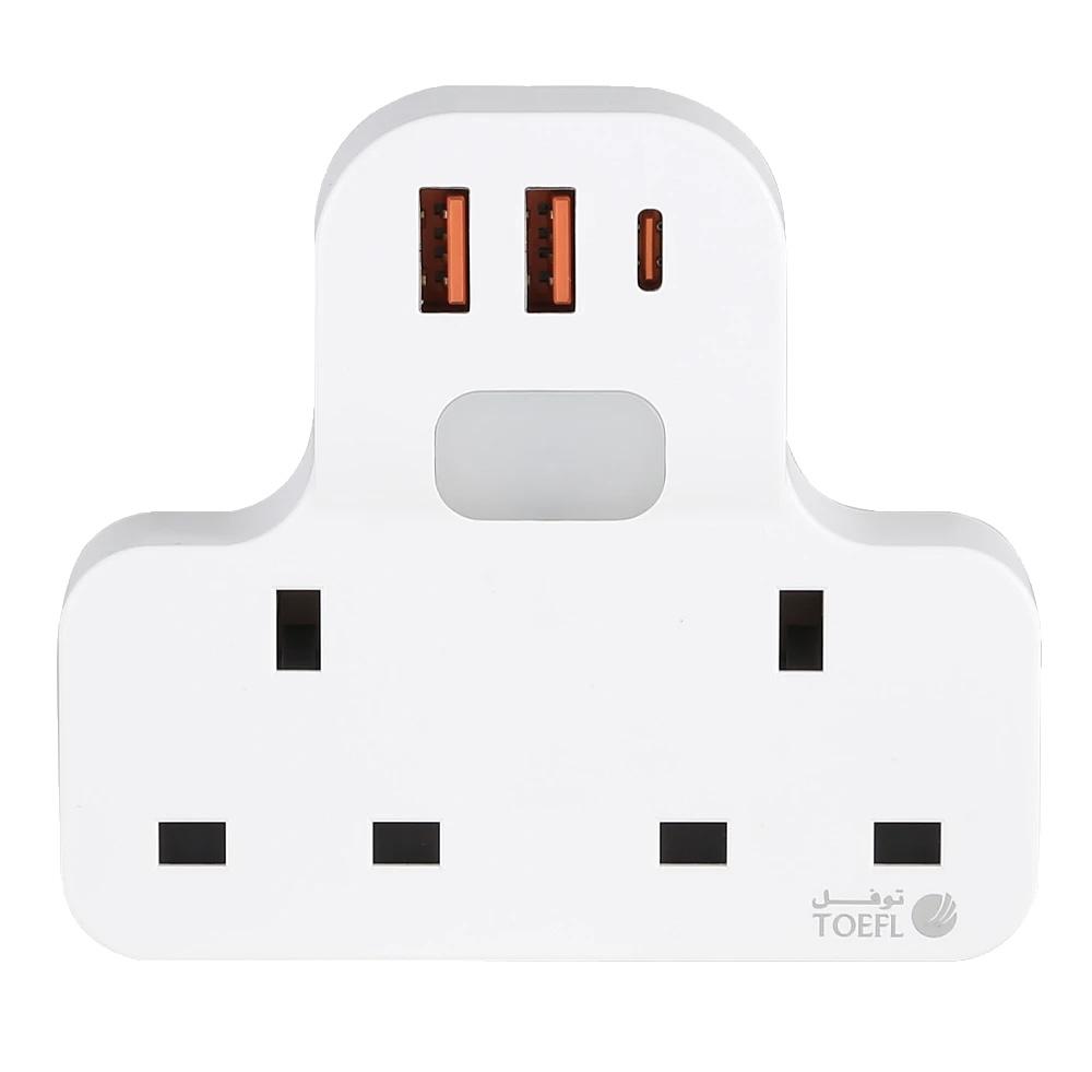 توصيلة قابس جداري افياش ثلاثي 2 مع مدخل 2USB +Type-C توفل